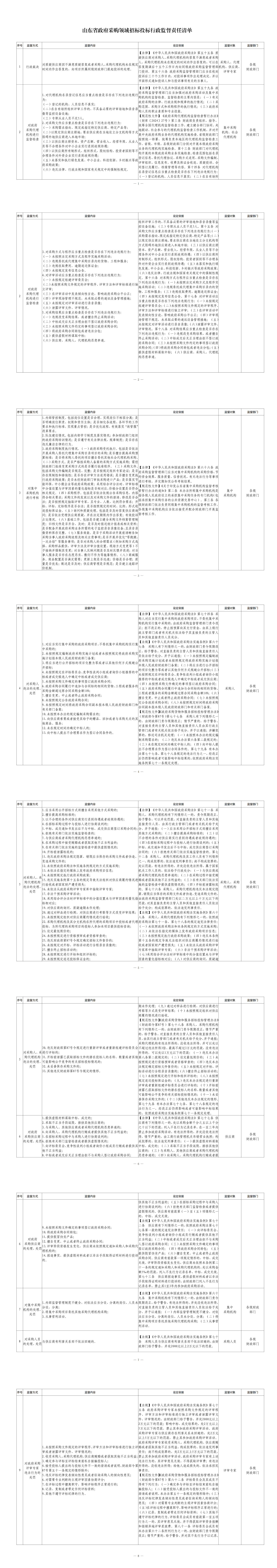 山东省政府采购领域招标投标行政监督责任清单